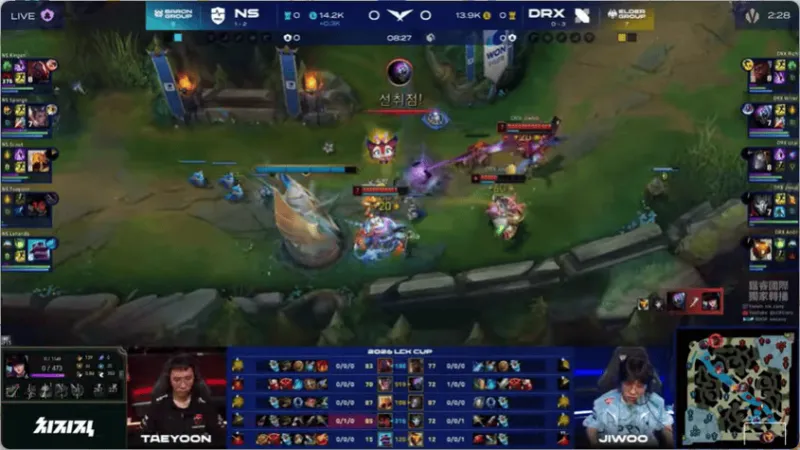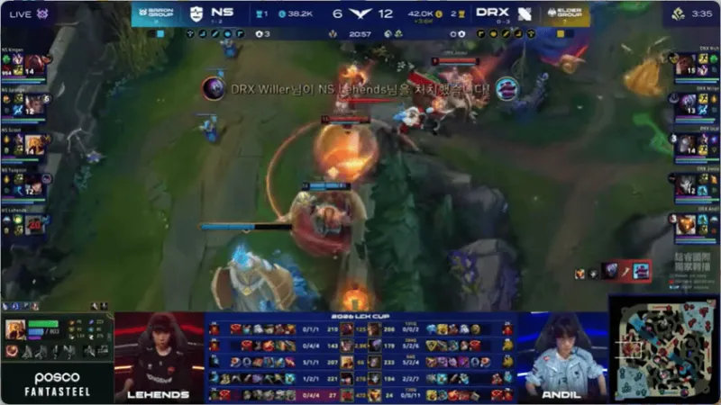 12分钟,两边河道混战,DRX打出2换4大获全胜